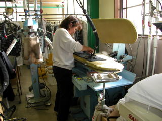 | ドイツファイト社 シャツスーツフィニッシャー (アルマーニ、マックスマーラー、ラルフローレン等一流ブランドのアパレル仕上設備です) 婦人スーツ、ポロシャツ、オープンシャツ等を 仕上ます。 水洗い処理後の品物もあり熟練のいる品物の仕上げでしたが熟練を要さずアイロンのアタリやテカリが出来ません。 |